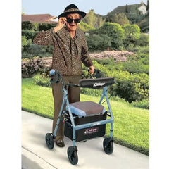 - Extra large, soft basket under the seat allows for more storage and doesn’t need to be removed when folding. And, it’s accessible under the seat and from behind the rollator.