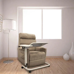 The Aspire Split Top Tilt Over Bed Table is a flexible and convenient solution for users in bed or chairs, including lift recliners. Its clever split-top design features a large tilting section for books, tablets, or writing, and a fixed section to keep drinks stable. With its recessed thermoform top and height/angle adjustability, itās ideal for both homecare and facility settings.