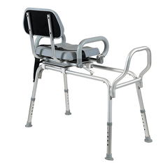The Aspire Transfer Bench with Rotating Seat (BTS150310) is designed for easy and safe transfers in and out of the bath. With its comfortable padded backrest, contoured seat, and 360° rotating lockable seat, it provides maximum user comfort and versatility. Its lightweight aluminium frame ensures durability and ease of use, while slip-resistant rubber tips enhance stability.
