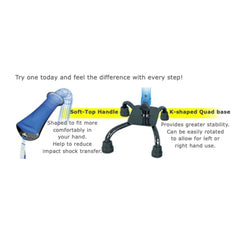 Comfort Plus Adjustable Quad Cane Wide Base – Large Base / Blue