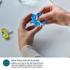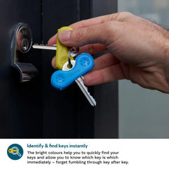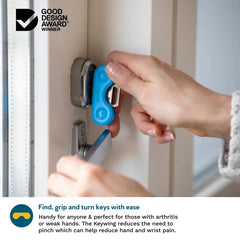 The dext Keywing Key Turner makes it twice as easy to turn a key. The Keywing reduces the need to pinch which can help reduce hand and wrist pain. The Keywing converts keys into an easy grip thumb turn which provides far more leverage, so that half the force is required to turn a key. The dimpled domes give fingers a firm grip to stop you fumbling and dropping keys which is particularly helpful for cold fingers. The bright colours help you to quickly find your keys and allows you to identify which key is which immediately - forget fumbling through key after key. It is quick and easy to assemble, by adhering your key to the 3M VHB (Very High Bond) adhesive pad and clipping back together. Robust clips ensure the product will not fall off in your pocket. The keyring does not need to be removed in order for the Keywing to be assembled. Handy for anyone, and perfect for those with arthritis or weak hands. Supported by Versus Arthritis UK.