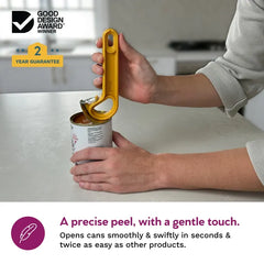 Its ergonomic, curved handle fits comfortably in your hand, spreading pressure and making can opening smoother and easier.