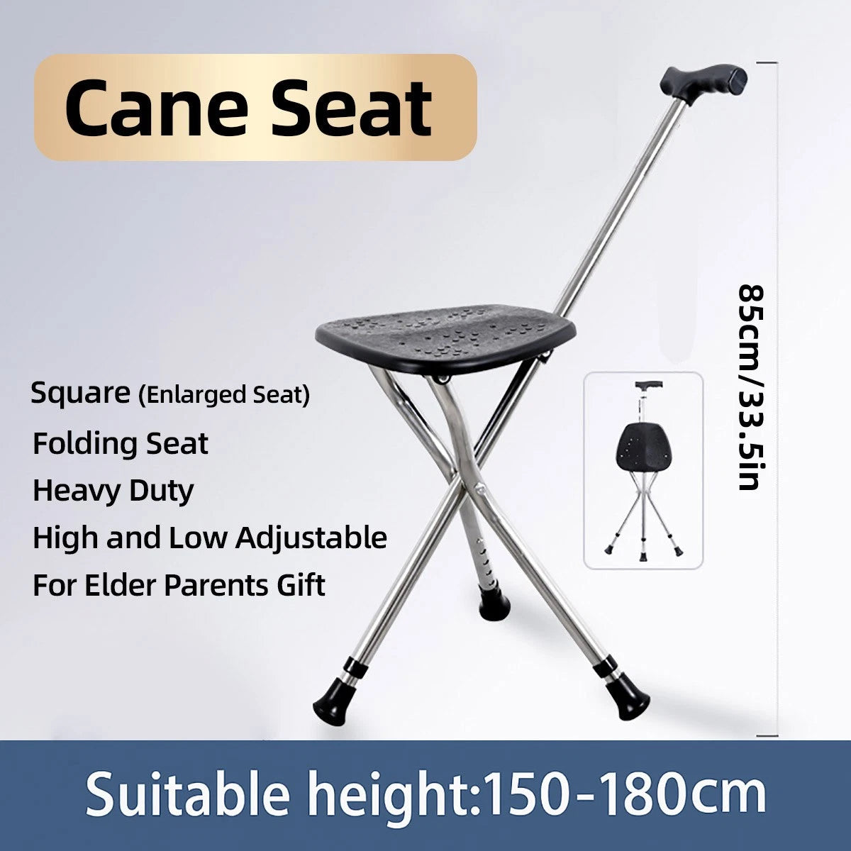 - 📦 Includes: 1× Foldable Cane Seat + 1× Pre-attached wrist strap