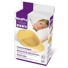 Ideal for the immobile patient, this bedpan has a tapered end for easier placement. Features a plastic guard to prevent spills, and built-in handles for easier placement and removal.
