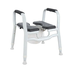 Freedom Split Seat Chair - 3 in 1 provides a versatile solution for showering, toileting, and personal hygiene. The patented split padded seat design allows front and rear access for cleaning without requiring the user to stand. Perfect for aged care or recovery settings, it features a height-adjustable frame, durable anti-slip feet, and stability-enhancing features.