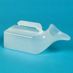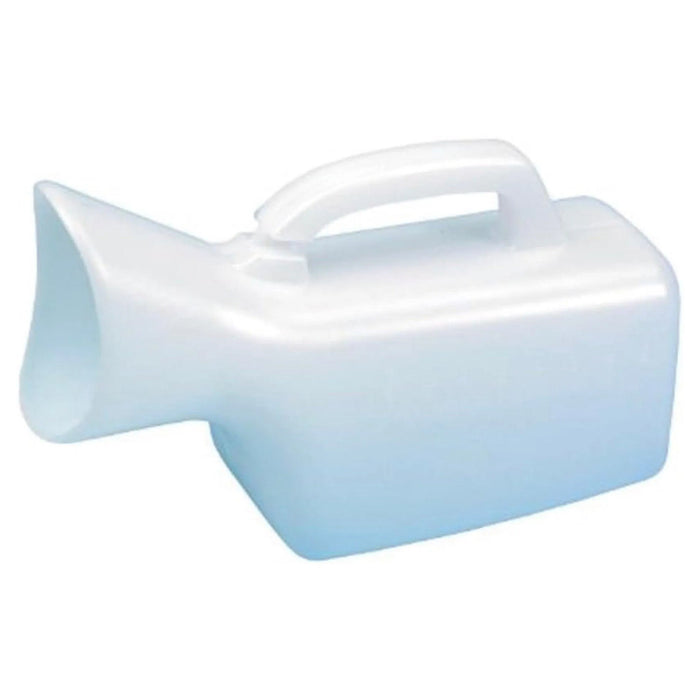 - This female urinal has a handle for ease of use. Anatomically designed to enable use when sitting, standing or lying. Female urinal bottle.