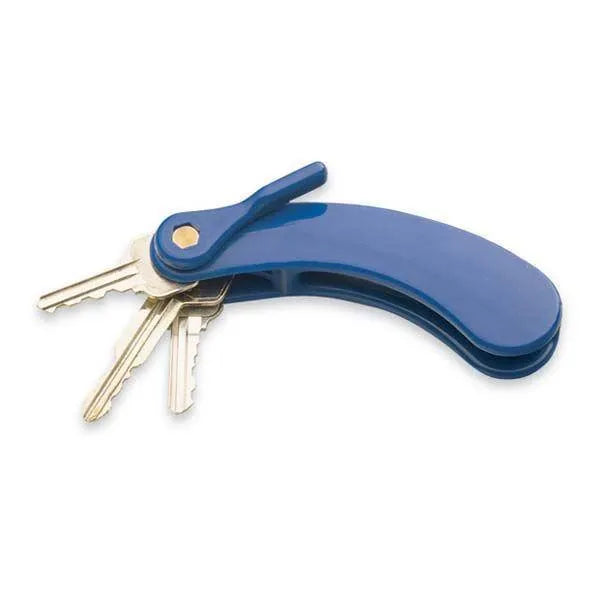 Designed with a large, curved handle to offer leverage for inserting a key into the lock and turning the key. The keys are held in place by a locking lever that holds them steady while the lock is being opened. This adaptive household aid is a great tool for individuals who struggle to hold and manipulate small keys.