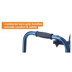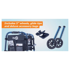 This model includes a Bonus Pack featuring 5” walker wheels and glides, allowing users to move effortlessly over most surfaces. With quick, tool-free assembly and adjustable height, this walker is ideal for users between 5’1” and 6’4”.