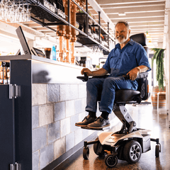 The Jazzy Air 2.0 Power Wheelchair elevates everyday independence. With Mid-Wheel 6 drive and Active-Trac® Suspension, it delivers stable indoor/outdoor performance, and its powered seat lift rises 304 mm in just 11 seconds — even allowing you to drive while elevated (up to 6.4 km/h) for easy, face-to-face interactions. Bright LED lighting, adjustable armrests/headrest, an integrated foot platform and handy under-seat storage round out a sleek, practical design. ✨