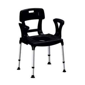 King Commode Chair with Backrest and Armrest – Black / Grey Cushion