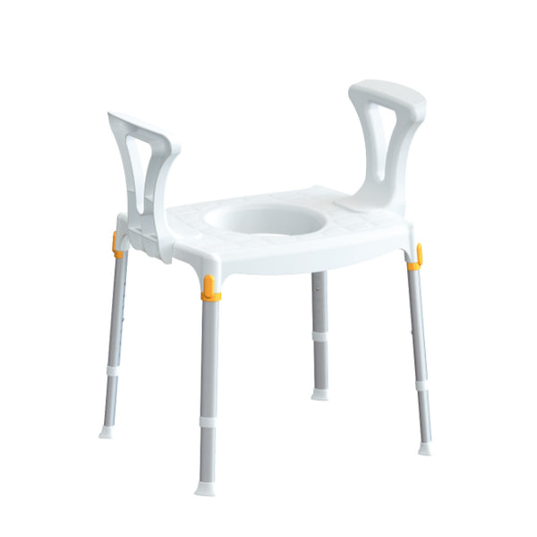 โ ๏ธ Before each use, confirm that all legs are locked evenly, the chair is stable, and the seating surface is secure. Because the bucket / pan is sold separately, ensure you have the correct pan for use.