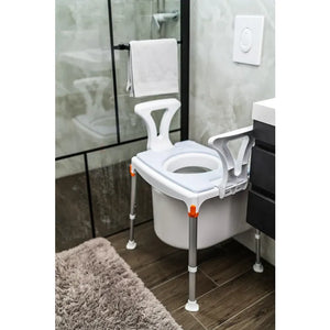 The King Commode / Over Toilet with Armrests is a versatile toileting aid designed to provide stability, comfort, and ease of use. It functions as both a commode and an over-toilet frame โ ideal for users who need a safe, stable support when seated over the toilet.
