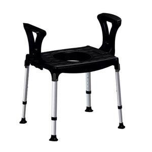 King Shower Commode / Over Toilet with Armrests โ Black / Grey Cushion
