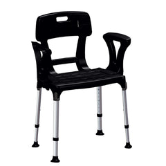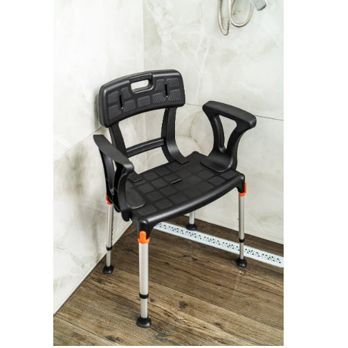 King Shower Seat with Back & Armrests – Black / Grey Cushion