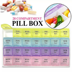 Known as Pill dispenser, Pill organiser, Medicine management box, medication case, daily weekly monthly medicine container, tablet storage, Pill planner