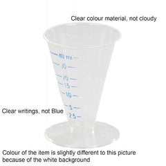- Plastic conical shaped medicine measure graduated to 40ml.