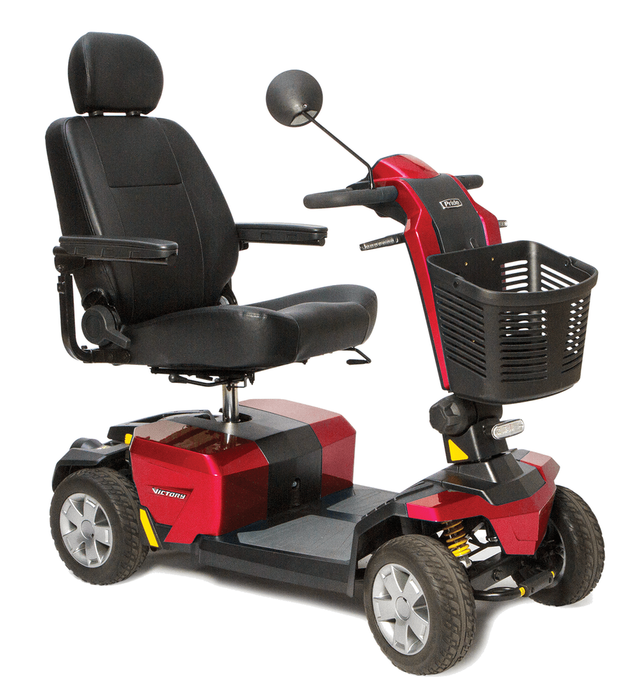The Pride Victory 10 LX Mobility Scooter is a sporty mid-size scooter designed for confident everyday travel. It features a full digital display with speedometer and odometer, a complete suspension system to smooth bumps, a high-back adjustable seat, and a powerful front/rear lighting kit. A complimentary rear bag and cane holder add practical storage for daily outings. 🌟