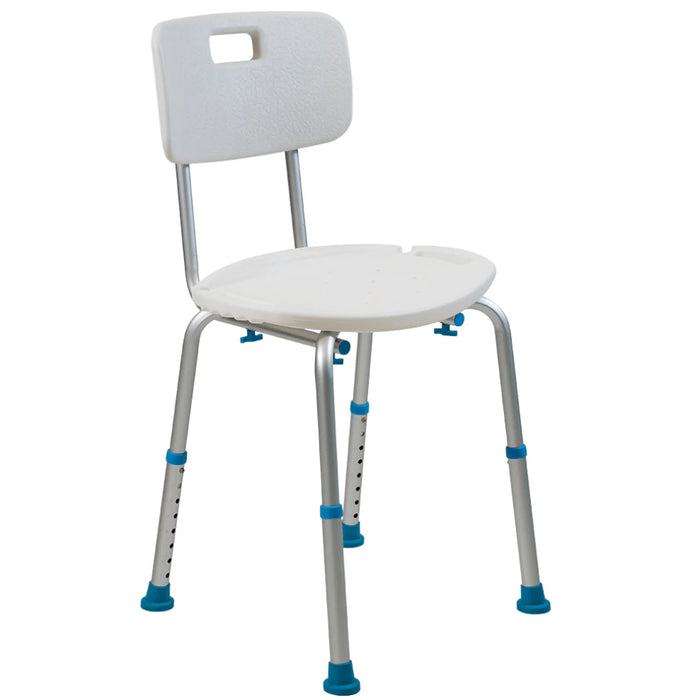 This MobilityHQ Shower Chair is an online-exclusive, sturdy shower seat with back support designed to help individuals with limited mobility bathe safely and independently. Its minimalist design fits compact spaces while providing stable, comfortable seating with easy-drain features.