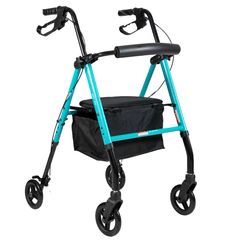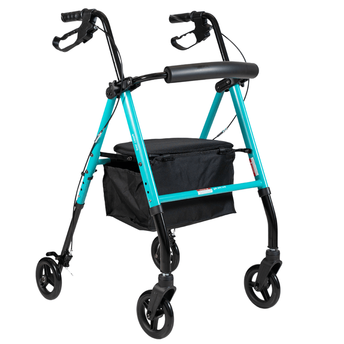 Meet the MobilityHQ Superlite Walker — a lightweight four-wheel rollator designed for everyday independence. Its aluminium frame is easy to lift, folds fast for car boots or storage, and includes a comfortable seat and supportive backrest for quick rests on the go. Height-adjustable, ergonomic handles with loop-style brakes provide confident control indoors and outdoors.