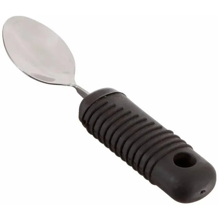 Designed to maintain user independence at mealtime, the bendable utensils help individuals with restricted mobility, diminished strength, and/or limited hand and wrist dexterity. The flexible ribbing along most of the rubber handle improves grip strength. The soft, cushion grip also prevents the utensil from slipping in the hand - even when wet! The built-up handle measures 1 ½” (3.8 cm) wide. Stainless Steel. Dishwasher safe up to 52°C. Latex free.