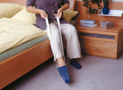 The Terry Cloth Sock Aid makes sock application easy. The flexible, plastic design enables it to bend around the heel, making it easier for the user to pull socks on over their feet.