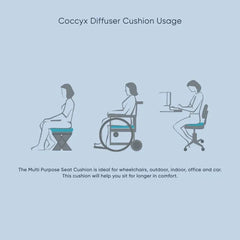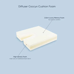 The basic function of any coccyx cushion is to diffuse and distribute pressure while removing pressure from tailbone with a cut-out that suspends the coccyx or tailbone. Our coccyx cushion is made from visco memory foam with a special inner core of heavy density traditional foam to create the lasting support that offers relief while seated. The Diffuser Coccyx Cushion is a therapeutic seat & chair cushion with multi-foam construction to assure its strength and support are maintained under the body’s continual load.Orthopedic cushions provide optimum pressure relief diffusing the body's load.