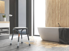 Let's Frisbee has a rotating soft cushion seat that makes it easy for users to clean themselves in the most comfortable way possible. Since the place rotates its easy to turn around if you need to access something behind you in the shower.