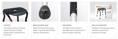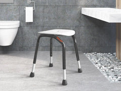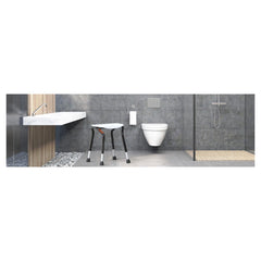 Let's Shower is a new shower stool with a modern design intended for use in the shower and bathroom. The stool has a beautiful and sturdy construction for safe and secure use. The legs are easily adjustable to the desired height with a simple push-button. The stool is designed to fit in any location.