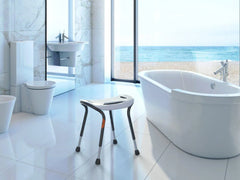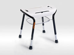 The stool features a beautiful and stable construction for safe and secure use in the bathroom. The stool is contoured and smooth and is comfortable to sit on. The angles of the legs provide a safe and stable stance.